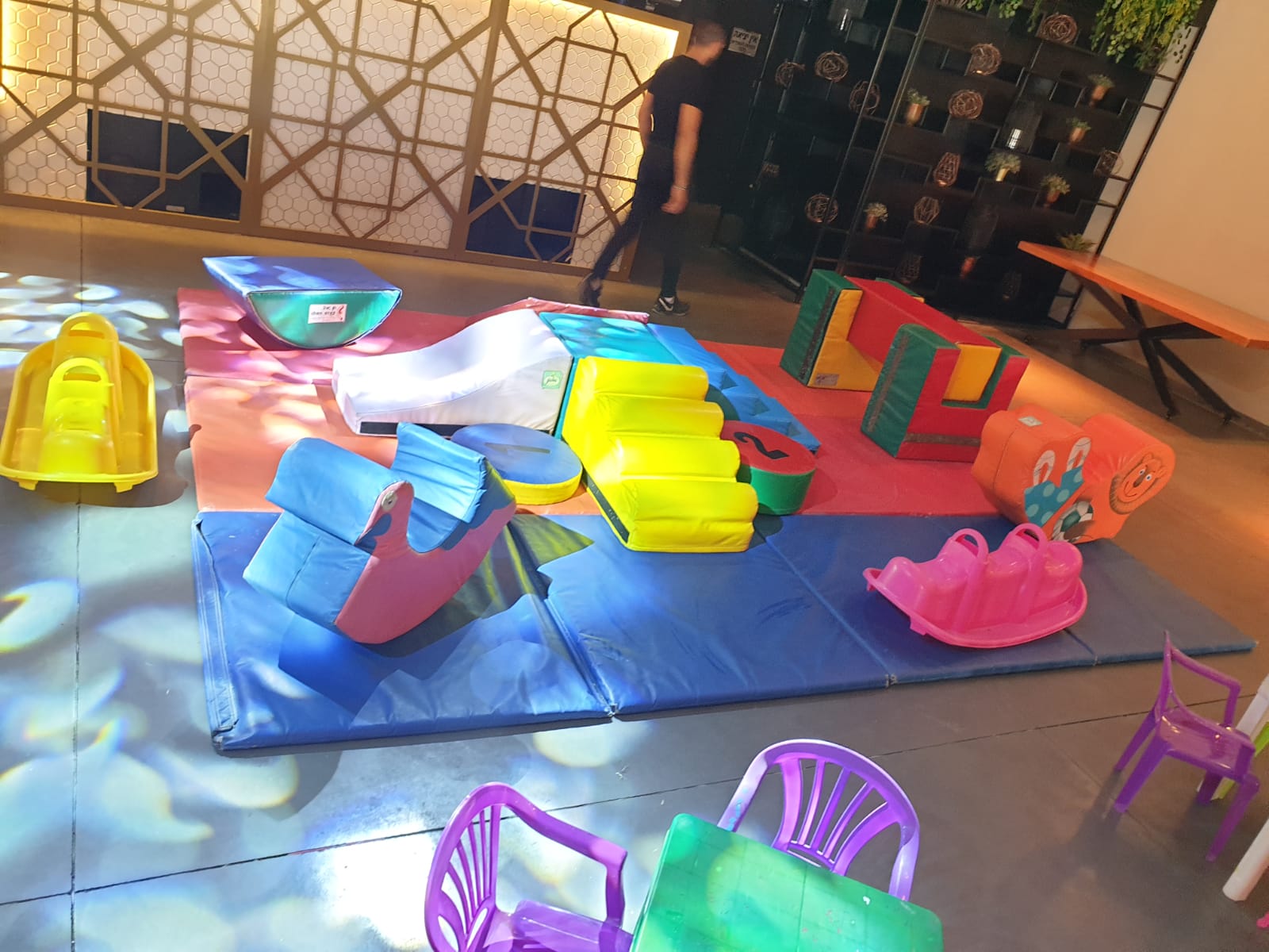 המתחם בנוי במיוחד לפעוטות בגיל הרך, עם תיחום בטיחותי, מזרנים רכים וספוגים יציבים – לצד מגוון חלקי ג'ימבורי מעוצבים למשחק חופשי, טיפוס, גלגולים וחיוכים בלי סוף.