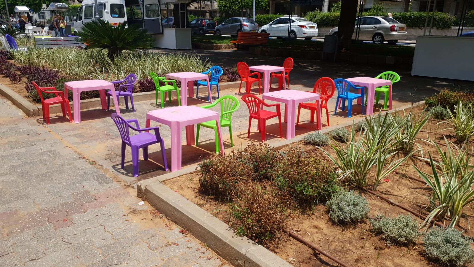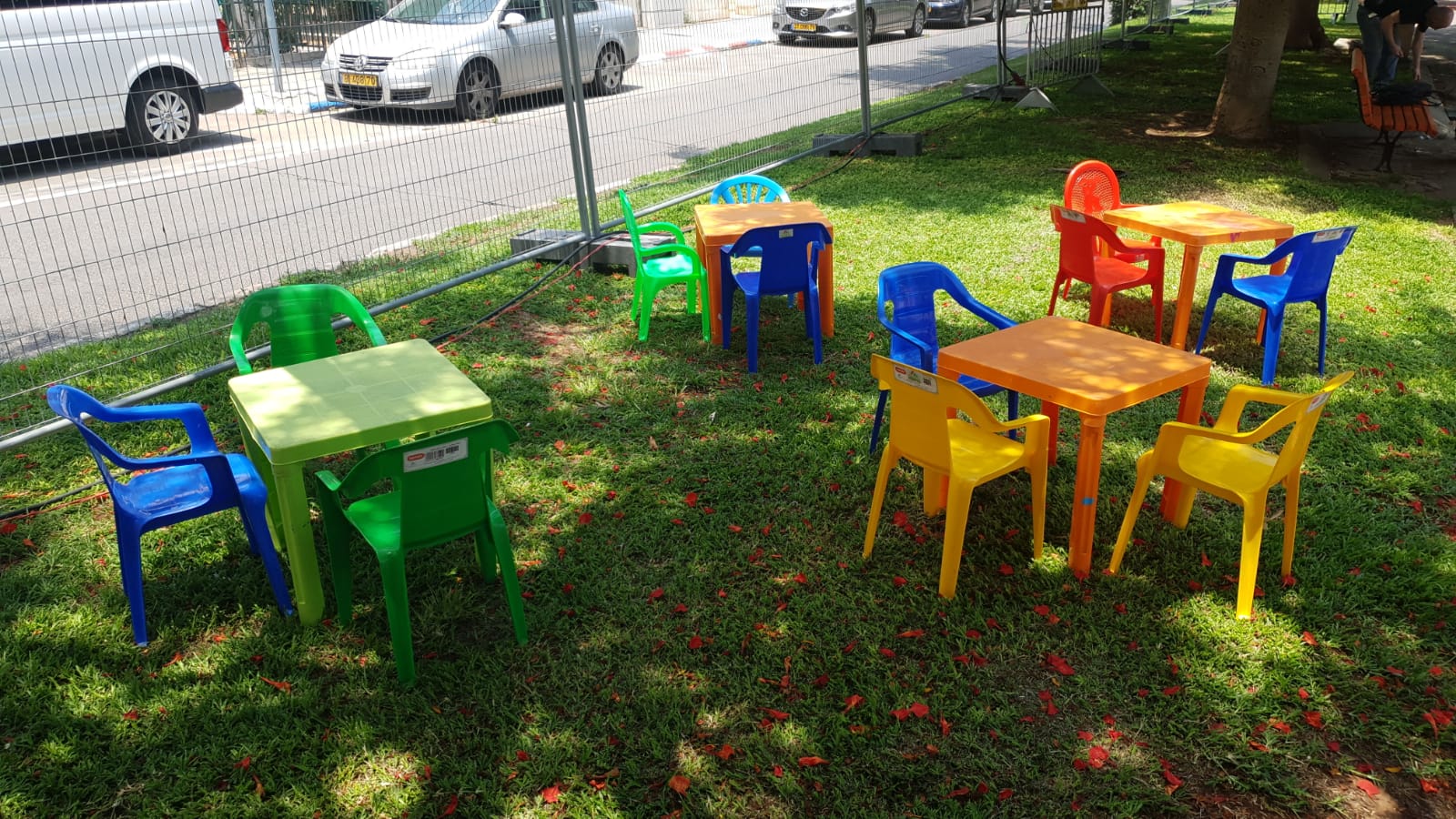 ✔️ שני שולחנות + שמונה כיסאות פלסטיק לילדים